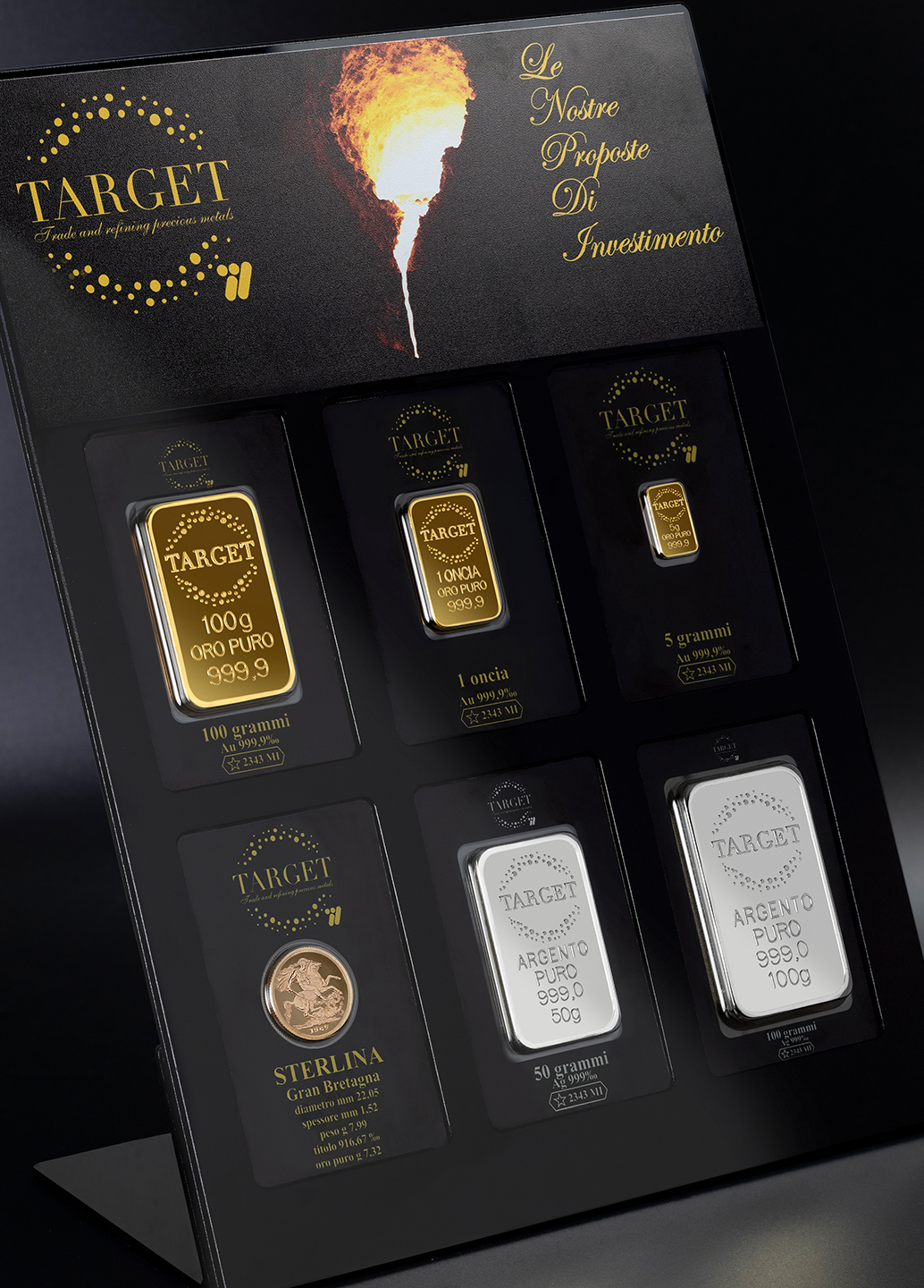 Un Banco Metalli è una società che ha tutti i requisiti di legge per poter essere considerata tra gli «Operatori Professionali in Oro». TARGET S.r.l è un Operatore Professionale in Oro autorizzata dalla Banca d’Italia con numero 5006721 ed è produttore con marchio d’identificazione “2343MI”. rilasciato dall’Ufficio Metrico della “Camera di Commercio di Milano Monza Brianza e Lodi”.